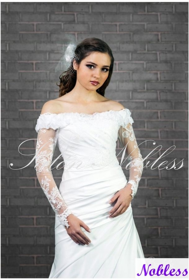 Luxusní krajkové bolerko přes šaty v bílé barvě. Bolerko je velmi vhodné jako doplněk ke korzetovým svatebním šatům, přes které se obleče a oživí tak celé šaty. Je dlouhé do pasu, kopíruje postavu. Dělá dojem šatů s dlouhým rukávem. Po jeho svlečení máte opět jiné šaty. Šijeme ve velikosti 36/38 a 40/42.