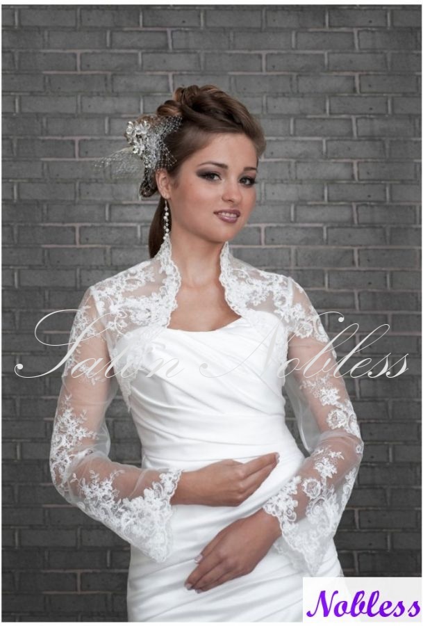 Luxusní krajkové bolerko v bílé barvě, velmi elegantní s rozšířenými rukávy. Velikost S skladem na salonu, ostatní velikosti na objednání cca 4 týdny. Lze objednat i v barvě šampaň.