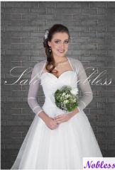 Jednoduché elegantní bolerko s dlouhým rukávem je vhodným doplňkem svatebních šatů, které nenaruší celkový dojem. Je vhodným doplňkem i ke krajkovým šatům, které se jinak velmi těžko kombinují s jiným materiálem. Momentálně na objednávku.