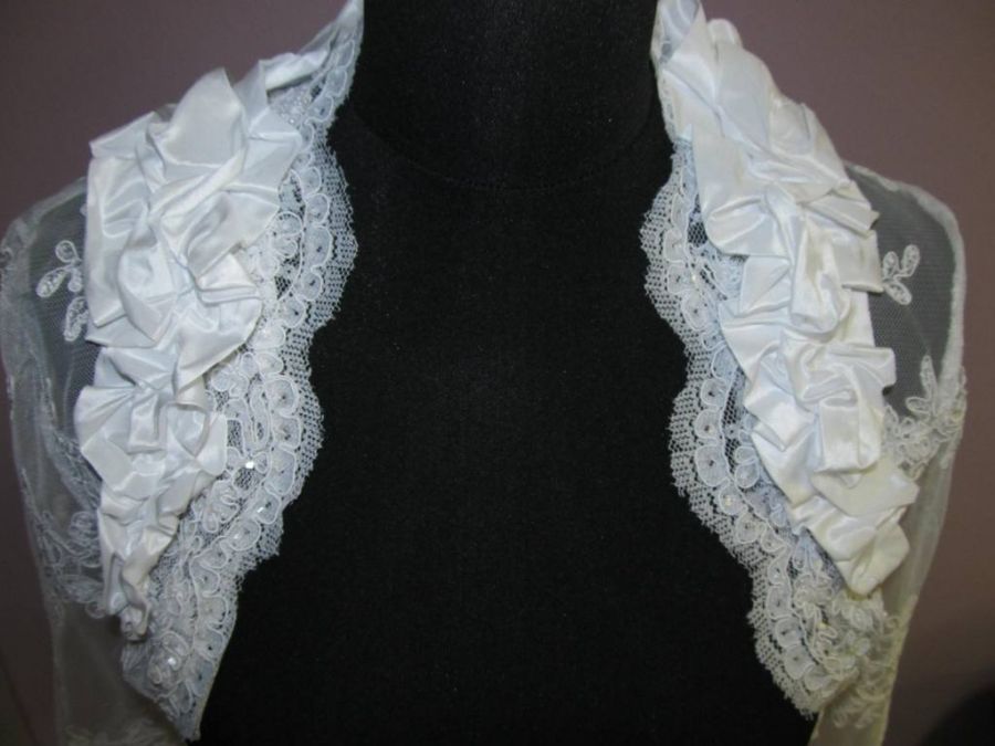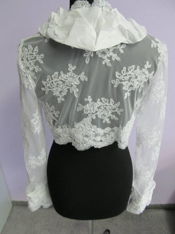 Luxusní svatební bolerko, materiál je tvarovací taft a krajka, stav - nové.