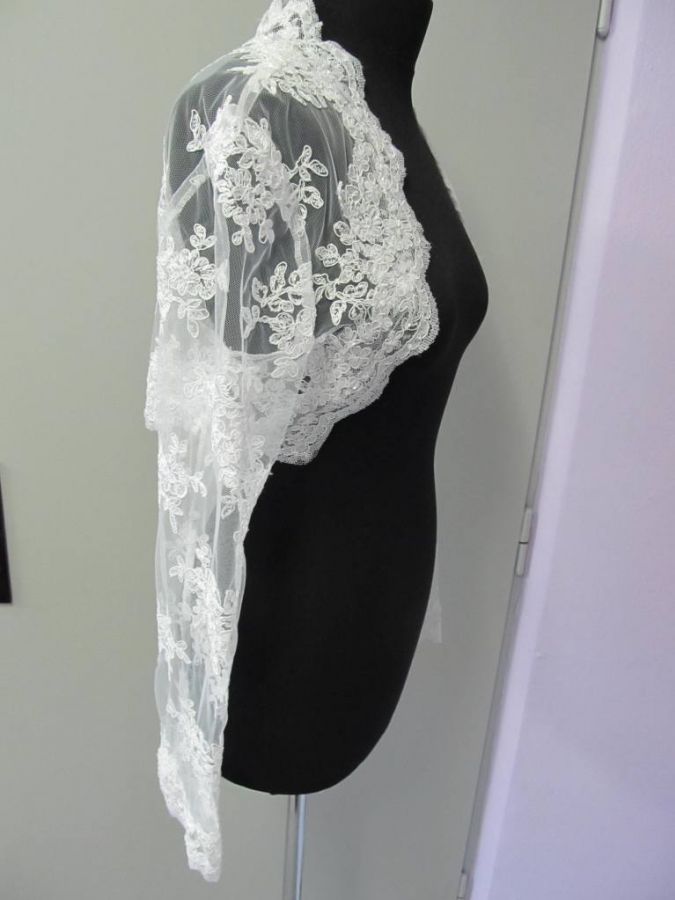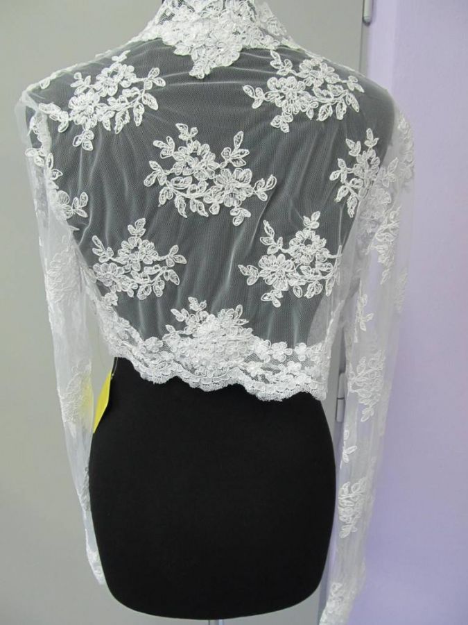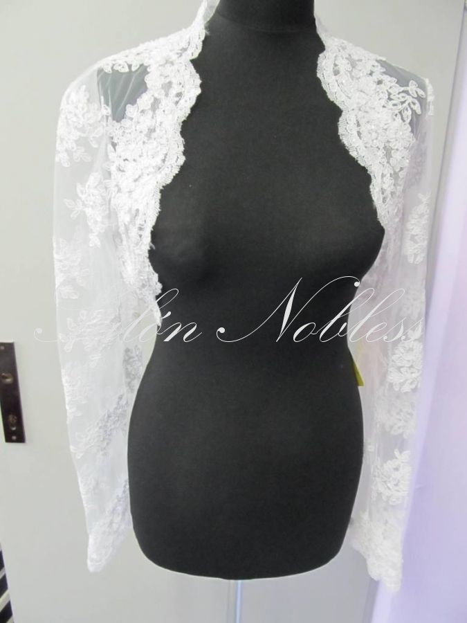 Luxusní krajkové bolerko, pošité korálky a flitry, vel.: 40/42, barva: bílá, stav - nové