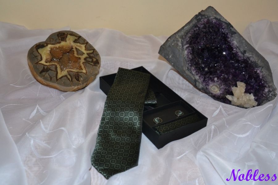 Luxusní kravatový set z hedvábné tkaniny s kapesníčkem a manžetovými knoflíčky. Skutečná barva fialová.