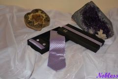 Luxusní kravatový set z hedvábné tkaniny s kapesníčkem a manžetovými knoflíčky.Skutečná barva světle fialová.
