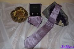 Luxusní kravatový set z hedvábné tkaniny s kapesníčkem a manžetovými knoflíčky.