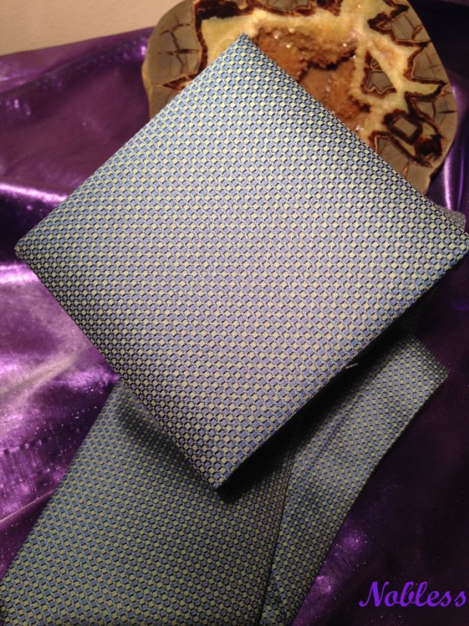 Luxusní kravatový set z hedvábné tkaniny s kapesníčkem a manžetovými knoflíčky.