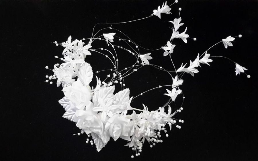 Látková květina do vlasů s perličkami a glitry. Upevnění na sponky