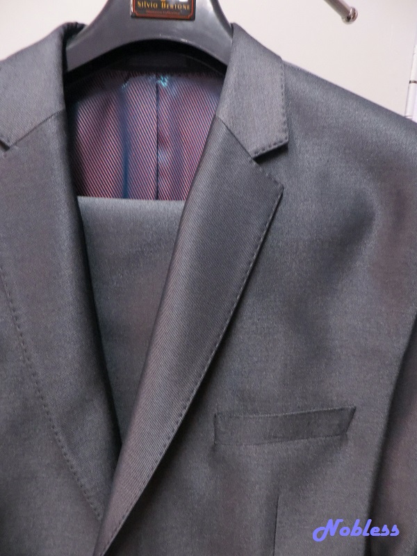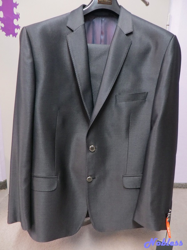 Pánský oblek - slim fit. Elegantní sako s ozdobným štepováním. Podšívka z pruhovaného hedvábí.