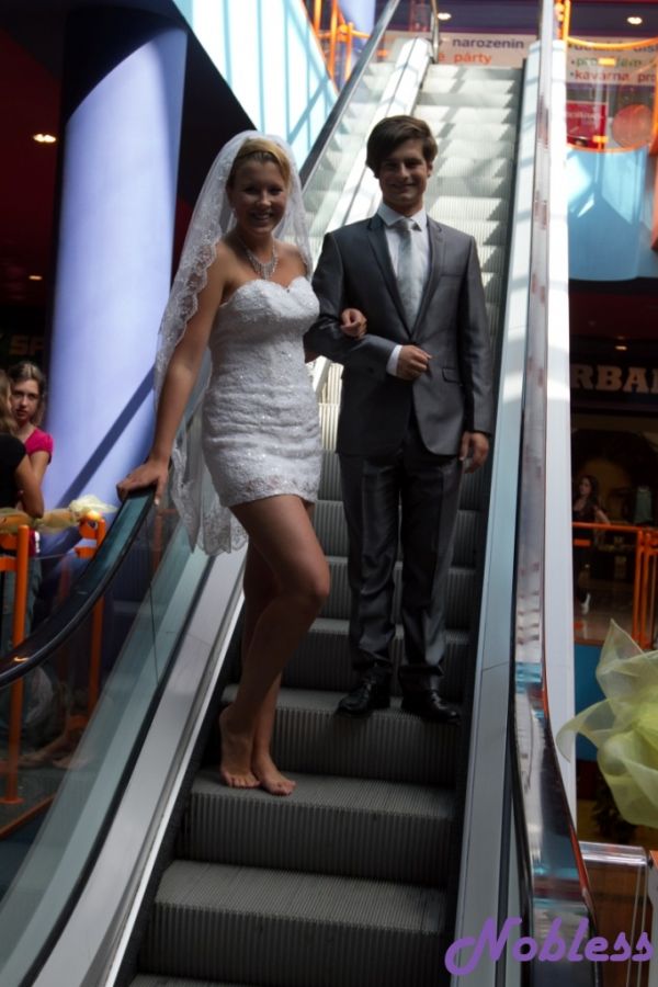 Oblek je vysoce módní - má metalický lesk a vyštíhlenou fazónu!
