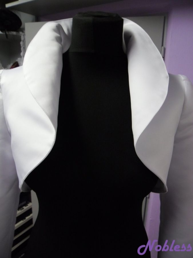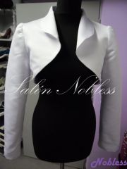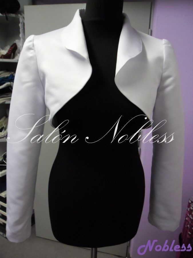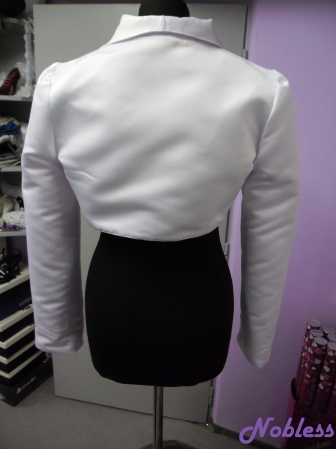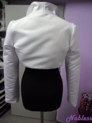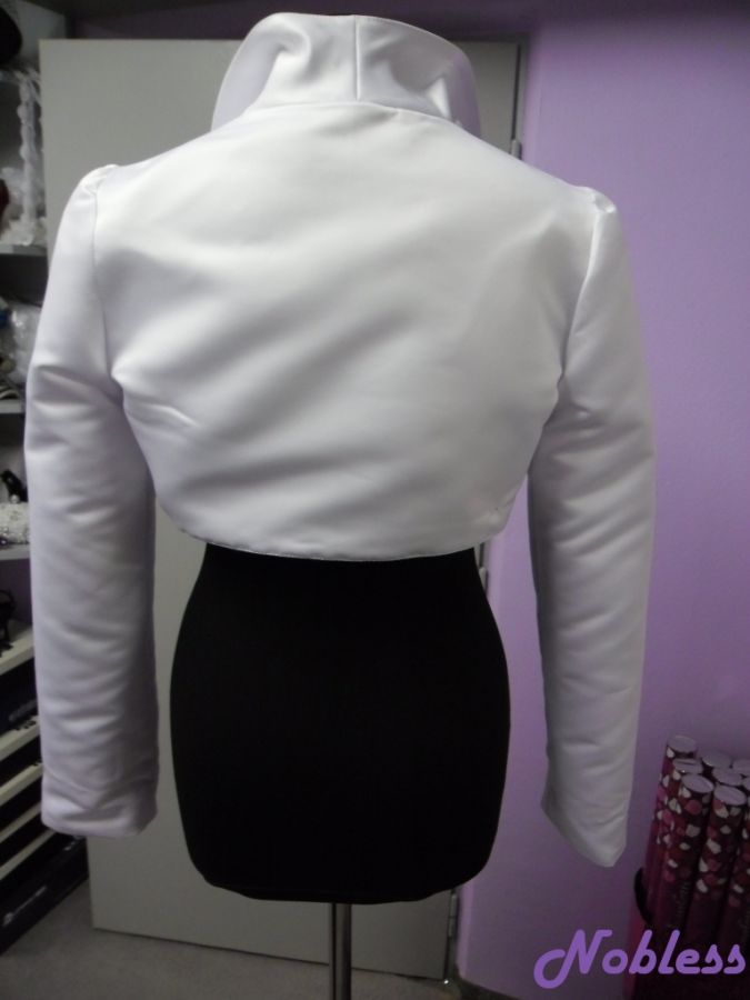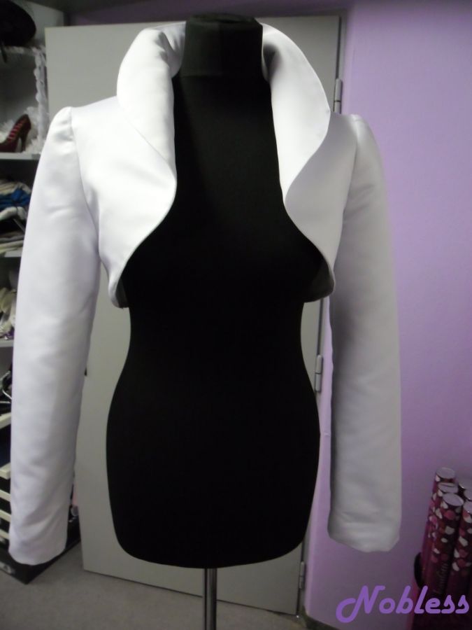 Materiál na bolerku je bílý svatební satén - dobře drží - tuhý, stav - nové.