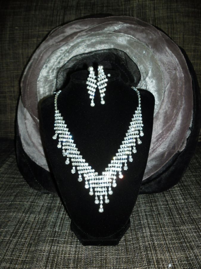 Krásný doplněk k večerním nebo svatebním šatům. Náhrdelník a náušnice štras. Délka 40 cm + 6 cm prodlužovací řetízek.