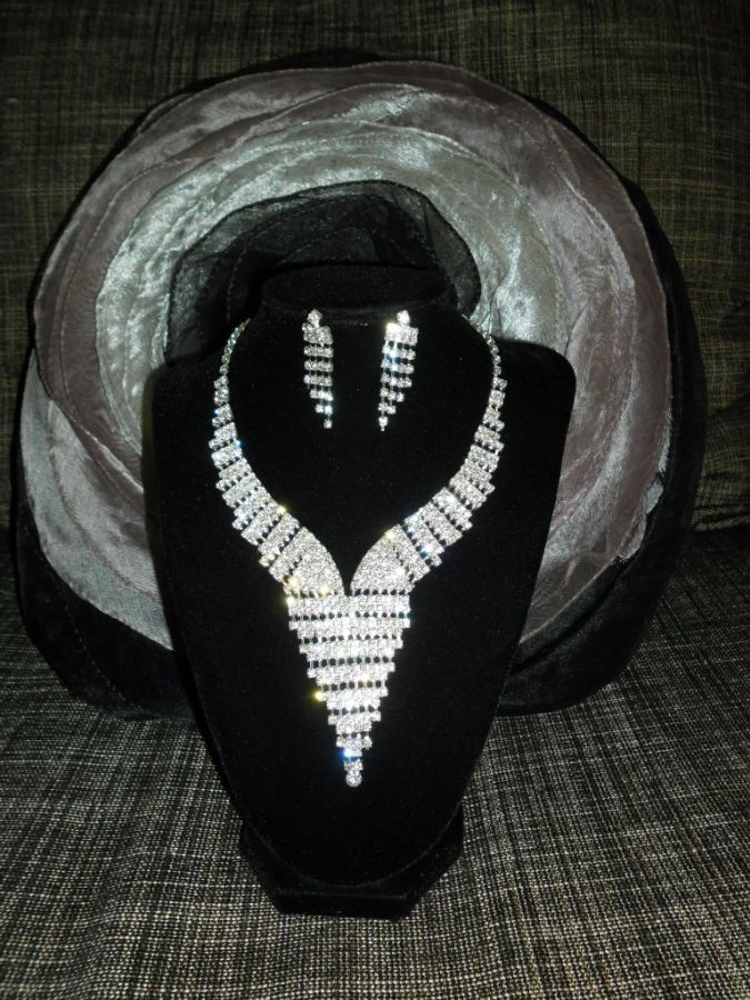 Krásný doplněk k večerním nebo svatebním šatům. Náhrdelník a náušnice štras. Délka 40 cm + 6 cm prodlužovací řetízek.