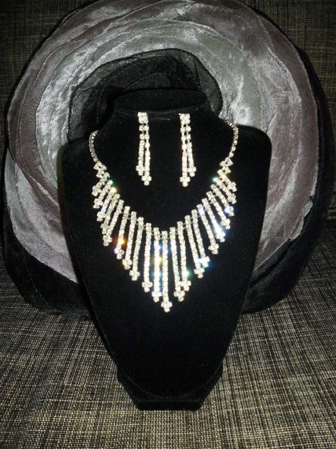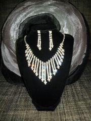 Krásný doplněk k večerním nebo svatebním šatům. Náhrdelník a náušnice štras. Délka 40 cm + 6 cm prodlužovací řetízek.