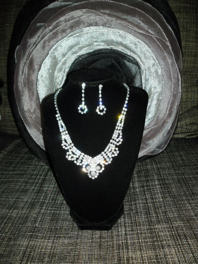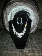 Krásný doplněk k večerním nebo svatebním šatům. Náhrdelník a náušnice štras. Délka 40 cm + 6 cm prodlužovací řetízek.