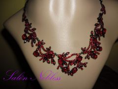 Nádherná souprava z červeného křišťálového skla. Délka 40 cm + prodlužovací řetízek. Náušnice 2 cm.