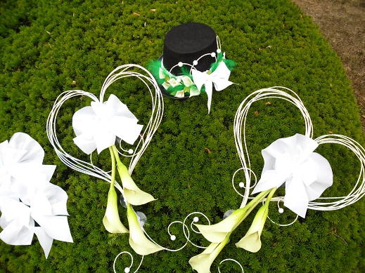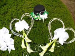 Svatební ozdoba na auto. Součástí jsou přísavky pro upevnění na kapotu vozu. Prodejní cena zahrnuje POUZE cylindr.